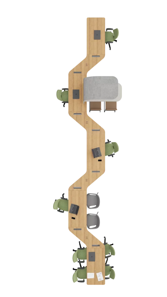 Esta linha é composta por uma família completa de mobiliário, desde estações de trabalho, mesas de reuniões e mesas executivas. Todos os modelos com estrutura para conectividade, ergonomia, possibilidade de fabricação sob medida para encaixar dentro de qualquer projeto, além de 10 anos de garantia.